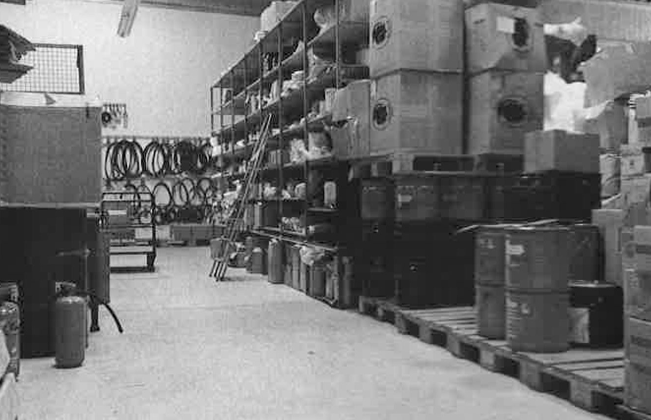 Damaliger Schwerpunkt des Unternehmens: Arbeitsschutz, Berufsbekleidung, Schläuche, Antriebstechnik, Feuerschutz und Voler-Schmiermittel.